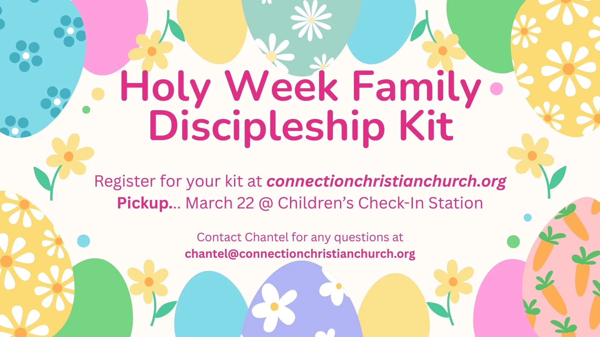 We’re providing a FREE Holy Week Family Discipleship Kit for your family. All you have to do is click the link below to register, and then pick up your kit on Sunday, March 22, from the children’s check-in station!